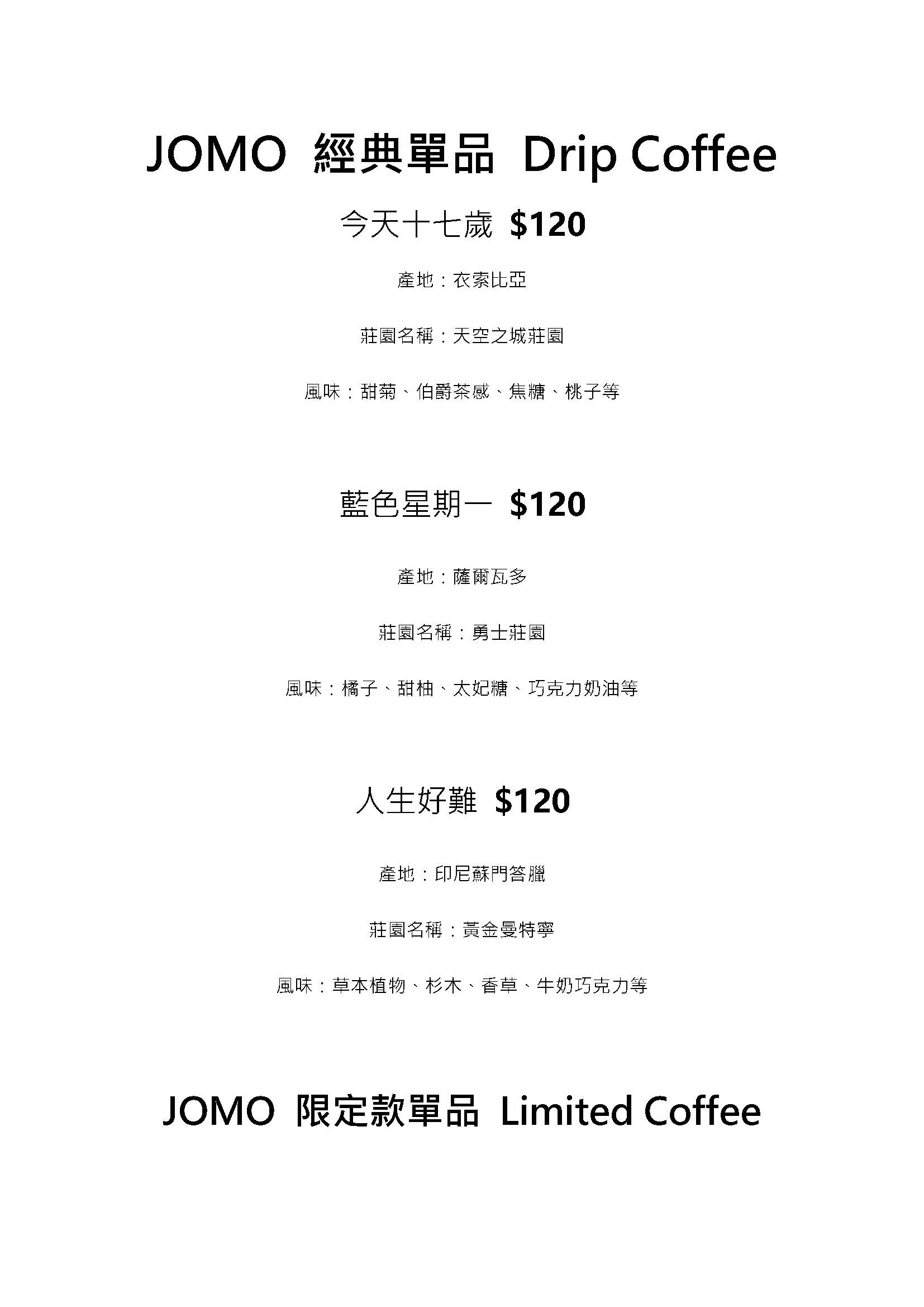 精品咖啡豆 | JOMO Specialty Coffee Bean